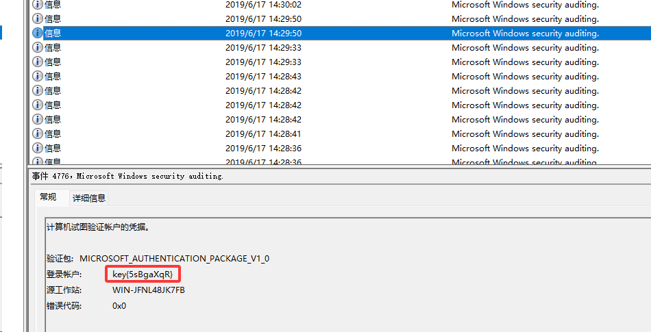 请分析windows日志文件winlog.evtx,并从中找到key信息。 直接提交key值即可