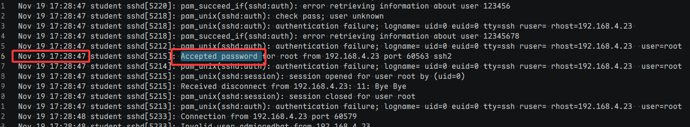 有一台服务器遭到了黑客的入侵,请下载日志,并从中分析出黑客的 IP 地址,并将黑客登录操作系统的时间作为 flag 值提交(注:提交的日期时间格式为 flag{HHMMSS})。