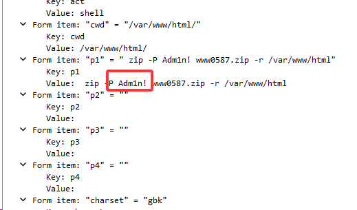 得找找密码,通过 http contains "zip" 过滤发现,这里疑似是上传了 webshell,看看是否是通过 webshell 执行了有关 zip 相关的命令