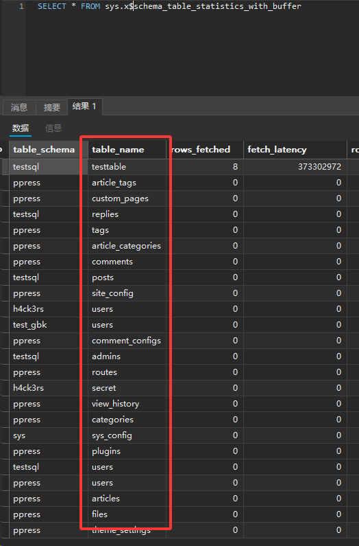 这个视图将表的读写统计数据内存缓冲状态结合在了一起,可以一眼看出哪些表最活跃,以及这些表在 InnoDB Buffer Pool(缓冲池) 中占用了多少地盘