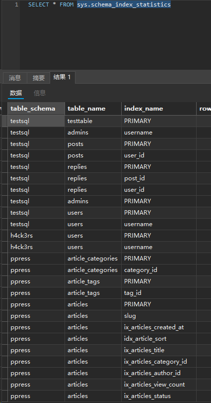 sys 库中,会发现绝大多数视图都是成对出现的,比如 schema_table_statisticsx$schema_table_statistics