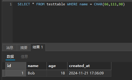 也可以直接 CHAR(66,111,98)