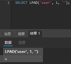 重点说说 LPAD(string, length, pad_string),如果过滤了 substr('user', 1, 1),那么我们可以用 lpad('user', 1, '') 替代