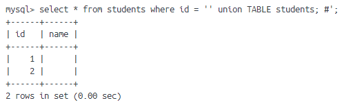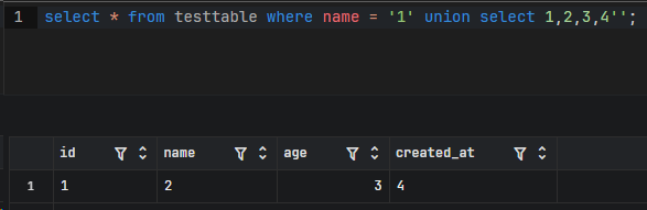 select * from testtable where name = '1' union select 1,2,3,4'';