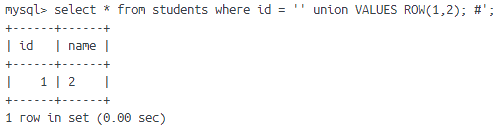 -- 直接输出一个包含两行三列的虚拟表,用来替换union select